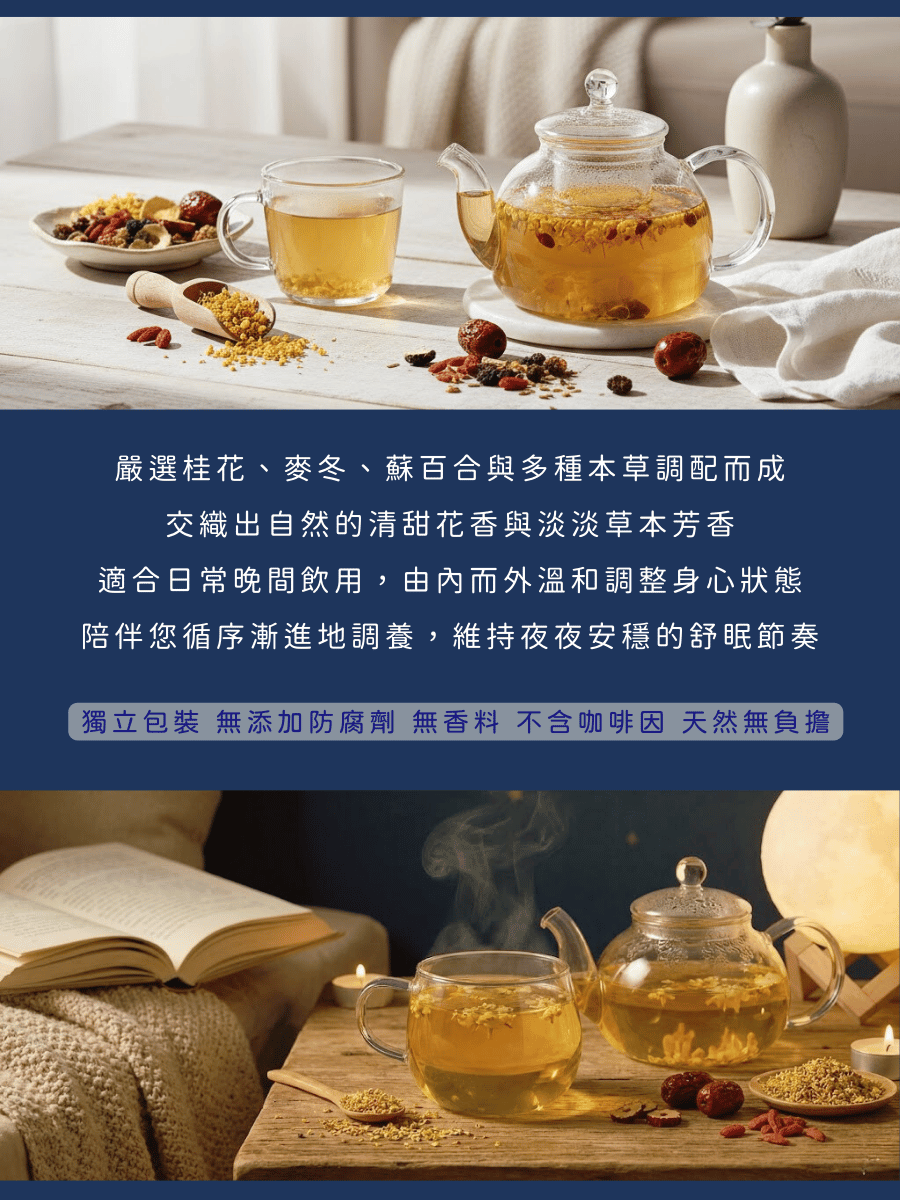 2️⃣ 草本配方溫和,適合作為每日固定的睡前飲品
